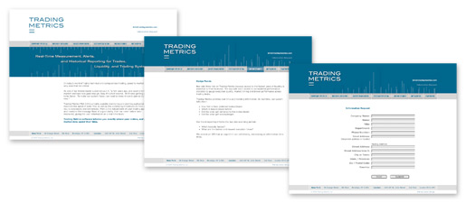 Website for Trading Metrics a company whose core product is a highly